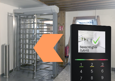 Personalfreie und sichere Zugangskontrolle mit Card Reader oder Code Eingabe zu Tennis- und anderen Sporthallen.